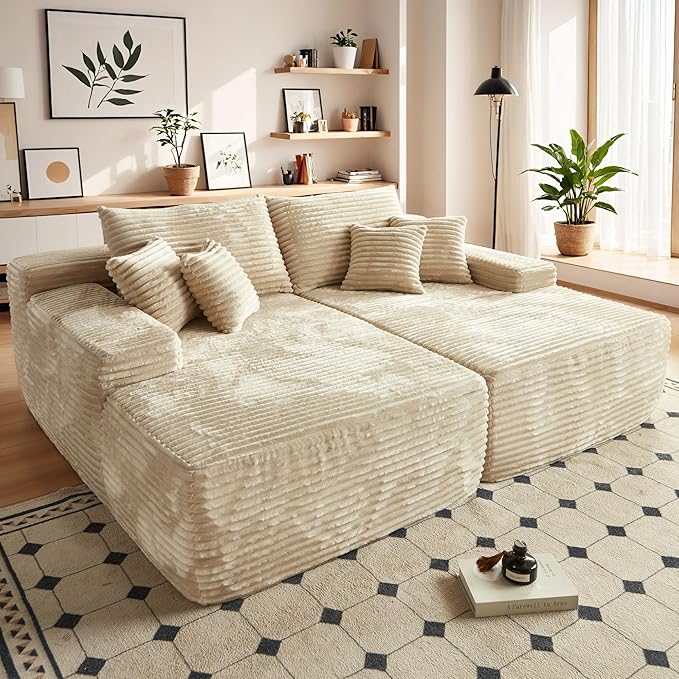 Material: Plush corduroy upholstery, high-resilience foam, reinforced springs